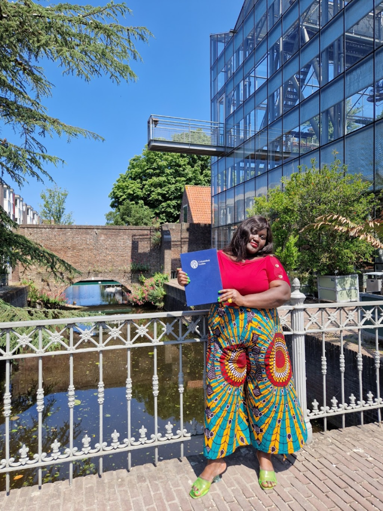I also returned to my former university where I earned an MSc in Public Administration; Leiden University. I participated in a tradition at the university (signing in the sweat room) and also took pictures with my certificate – such a bummer that I did not have official graduation pictures – due to COVID!